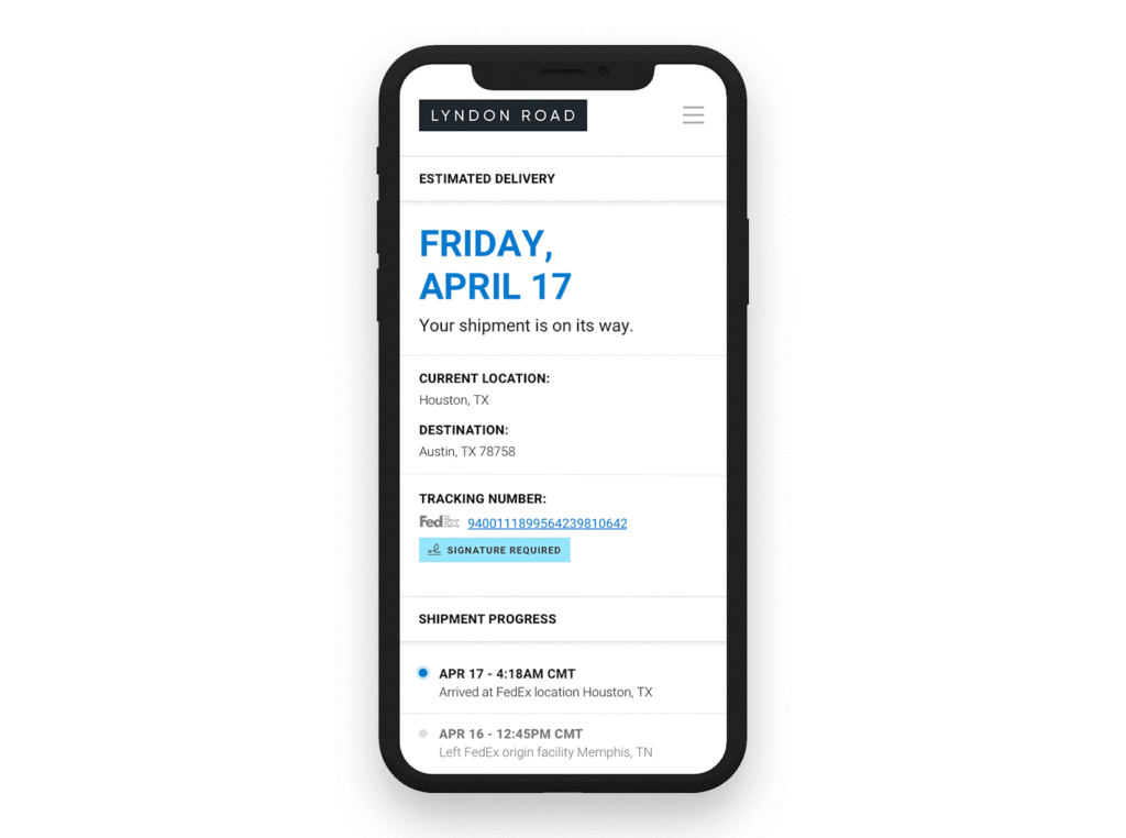 Additionally, ShippingEasy offers a free branded tracking feature. Branded tracking serves as an alternative to the carrier tracking page customers usually see when they click a tracking link. Branded tracking pages can include social media links, logos, and other customized fields to give your customers a more personalized tracking experience. Customers can also opt into SMS branded tracking notifications for domestic shipments.