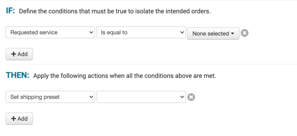 - Set up shipping rules to automate carrier options based on criteria such as the customer’s requested service.