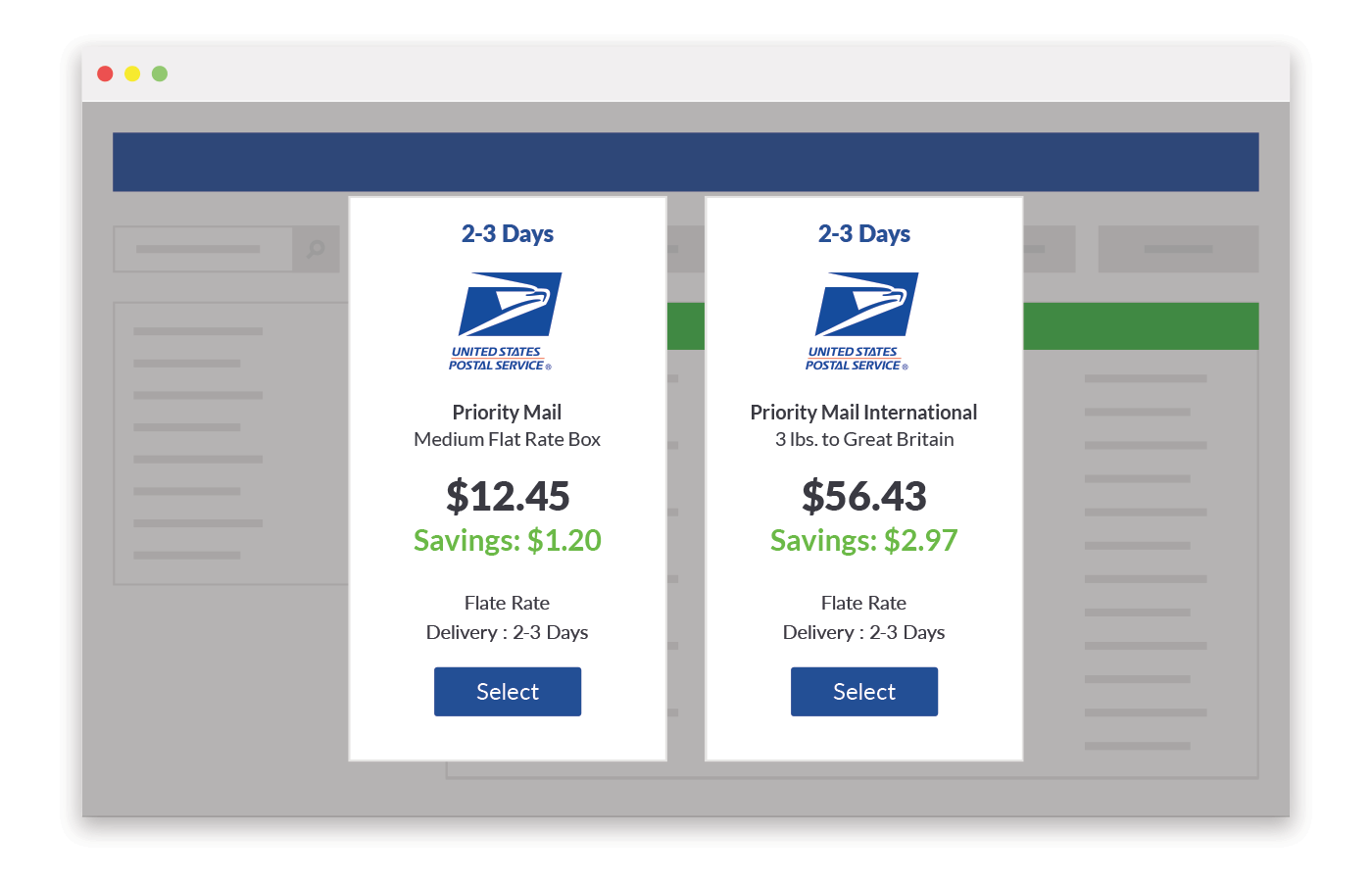 - Huge discounts on USPS shipping services like Priority Mail, Flat Rate, Regional Rate, Express Mail, and International Shipments