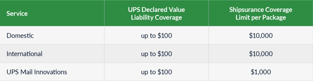 We’ve added a table below to break down UPS declared value and other options for insurance.