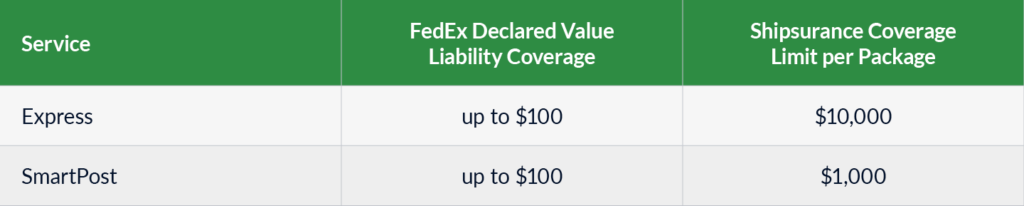 Much like UPS, FedEx offers a declared value service for shipments up to $100. ShippingEasy users do have the option to add more declared value to their shipments for an additional FedEx surcharge.