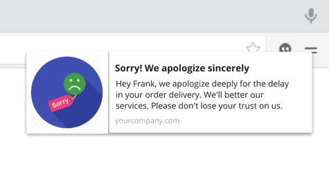 Customer service can’t be flawless, but efforts to mend fences shouldn’t be compromised. There are occurrences when an order gets delayed due to late processing, a lag with the logistics section, or because of mismanagement on the retailer’s end. Whatever the reason, proactive communication about the delayed delivery through a Web Push Notification is important to keep the customer informed. This small and real-time gesture reflects that an ecommerce brand acknowledges its mistakes and is empathetic to customers.
