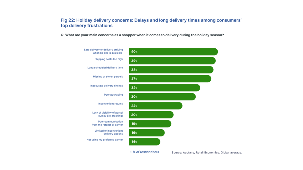 Preparing for last-minute shoppers can be tricky because of shipping deadlines, return windows, and having to plan your shipping budget. However, we’re giving you the gift of guidance this holiday season! Our recent study with Retail Economics found that 39% of customers are concerned about high shipping costs this holiday season globally. Additionally, 19% of customers stated they were worried about poor communication from merchants and/or carriers.